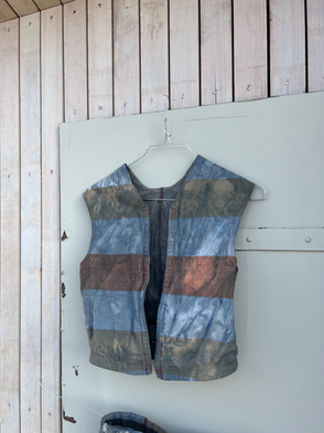 Once the trousers were fully assembled, we applied a cold dyeing technique overnight. This cold dyed process ensures rich, deep colors while being gentler on the fabric and the environment.
